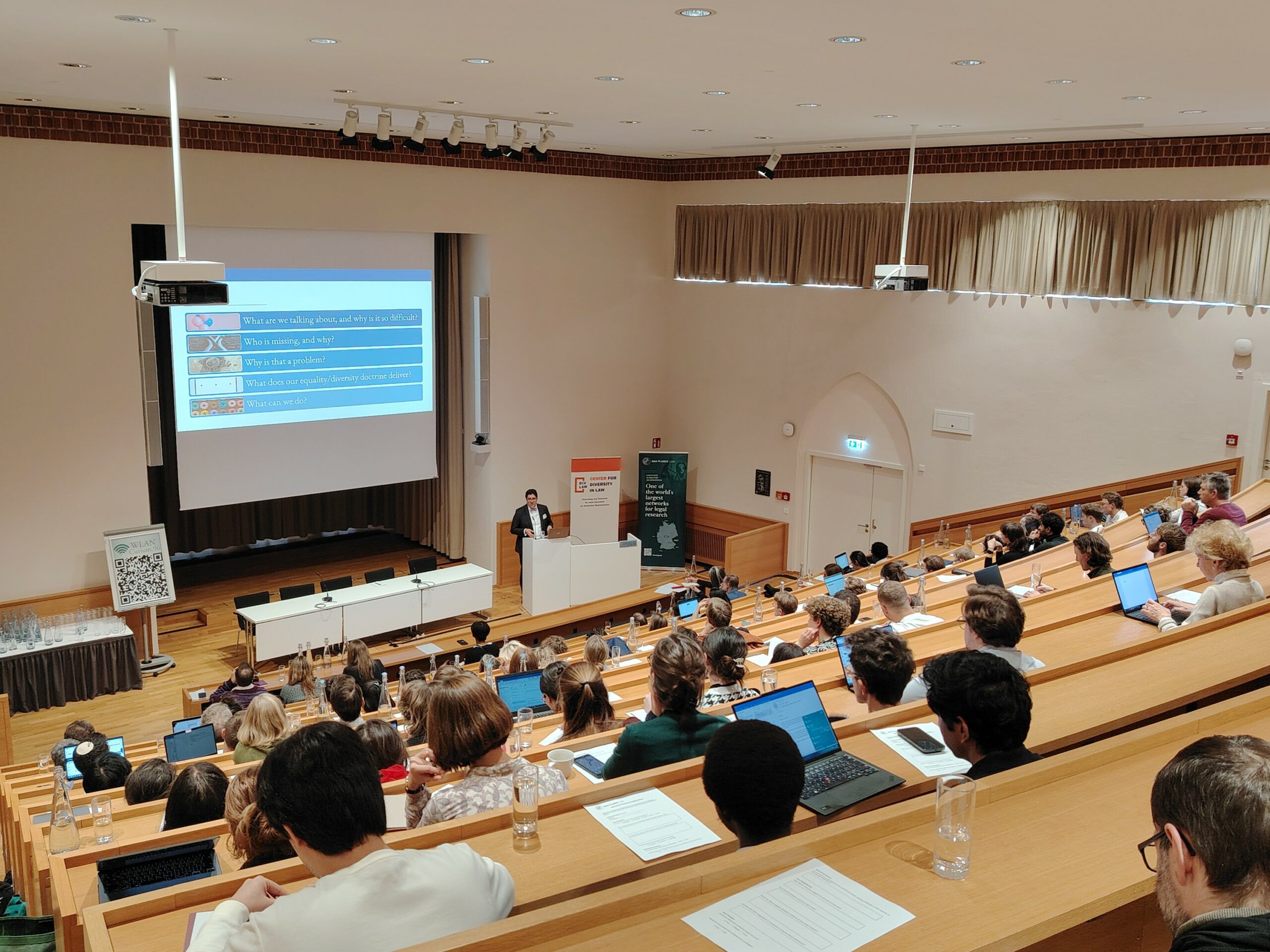 Ein weiterer Höhepunkt war die Keynote von Prof. Dr. Emanuel V. Towfigh, mit dem Titel »Equality in the Face of Diversity: Challenges for the Rule of Law«. In seinem Vortrag beleuchtete er die Herausforderungen, die schon mit dem Nachweisen und Benennen fehlender Diversität im Rechtssystem einhergehen, und diskutierte Erkenntnisse aus empirischen Studien zu Diskriminierung und Exklusion sowie erste Ansätze, diesen Phänomenen entgegenzuwirken.