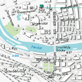 Das Institut ist am einfachsten vom Hauptbahnhof aus zu erreichen. Sie folgen der Mittermaierstraße in Richtung Norden über die Ernst-Walz-Brücke in die Berliner Straße und fahren weiter geradeaus bis zur Straßenbahnhaltestelle Technologiepark (dritte Straßenbahnhaltestelle hinter der Ernst-Walz-Brücke). Dort biegen Sie an der Ampel nach links in die Straße Im Neuenheimer Feld ab. Nach ca. 150 m erreichen Sie das auf der rechten Seite gelegene Institut.