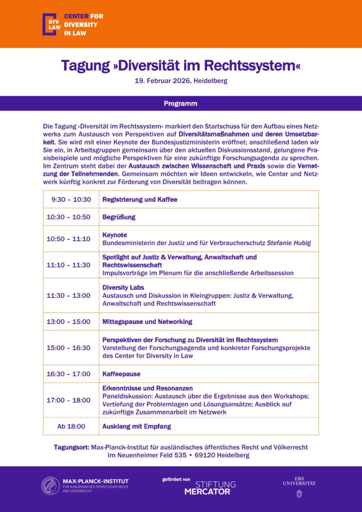 Das Center for Diversity in Law lädt herzlich zur Tagung »Diversität im Rechtssystem« am 19. Februar 2026 in Heidelberg ein.